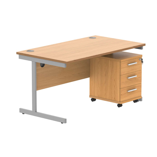 Single Upright Rectangular Desk + 3 Drawer Mobile Under Desk Pedestal (FSC)